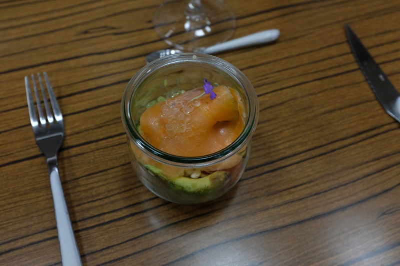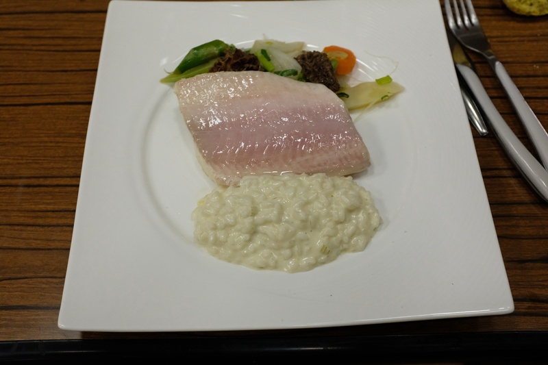 L'ancien chef du restaurant "Le Saint Martin" à Montbéliard nous a proposé un menu étoilé, avec, en entrée une verrine fraîcheur aux saveurs d'Amérique du Sud, en plat, un omble aux morilles, légumes de printemps, vin jaune et risotto crémeux, en dessert, une verrine aux perles du Japon, tartare de fruits exotiques